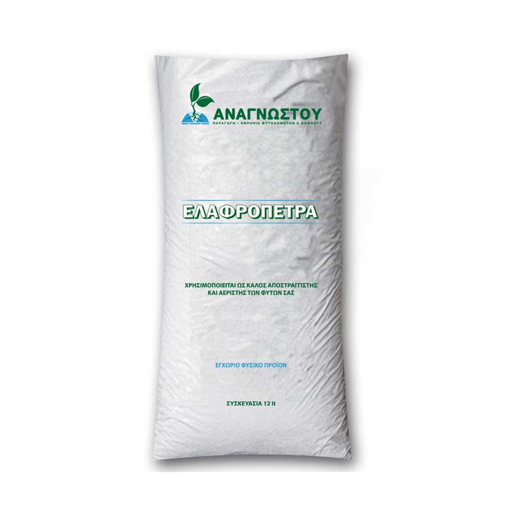Η ελαφρόπετρα είναι ένα χημικά αδρανές πορώδες ηφαιστειογενές ορυκτό που εξασφαλίζει την καλή στράγγιση και αερισμό του ριζικού συστήματος και βελτιώνει την δομή του εδάφους.